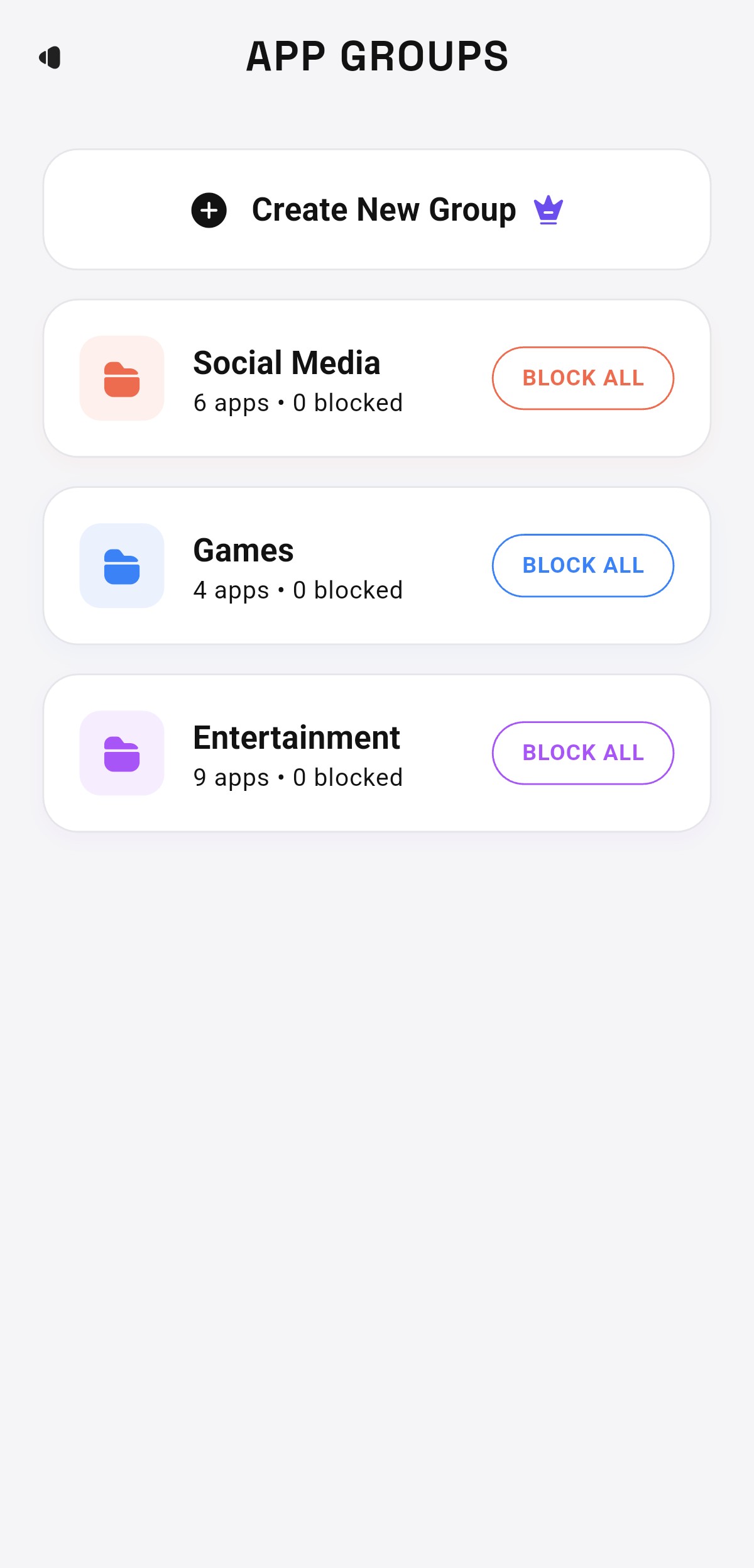 Categorize apps to block them in bulk with a single tap.