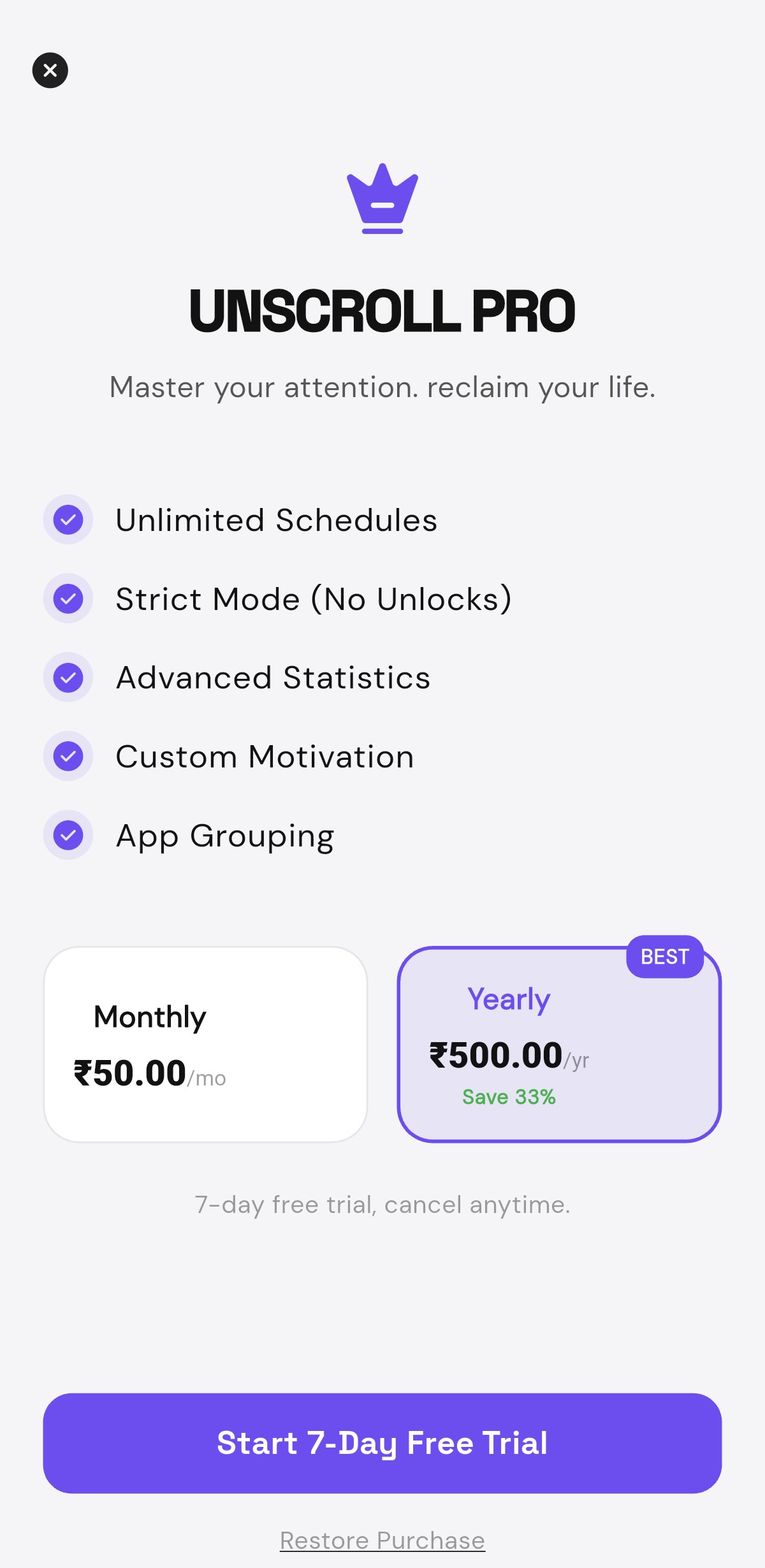 Unscroll is the ultimate productivity tool designed to help you reclaim your time. By blocking distracting apps, it ensures you stay focused on what truly matters. Features include a rigorous 'Locked Mode' where apps cannot be opened, an 'Emergency Unlock' option via ads or premium, and 'Focus Mode' for deep work sessions. Group apps for easier management and track your saved time effortlessly.